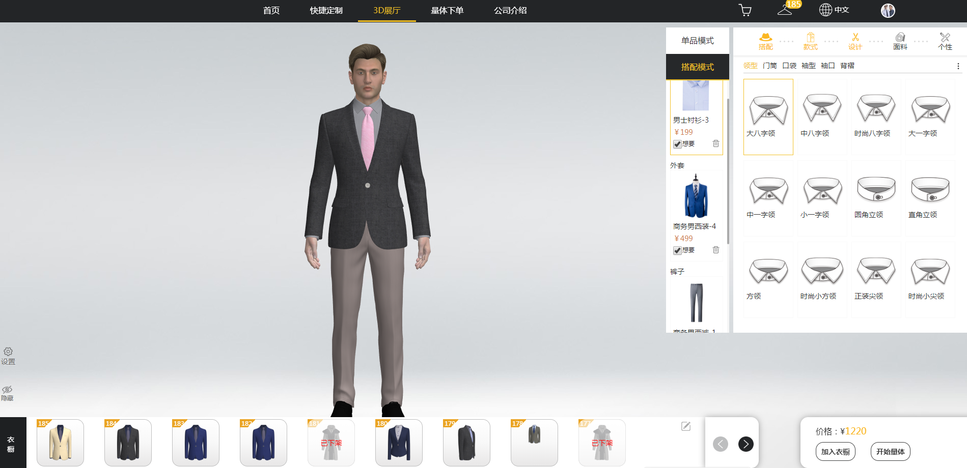 系統(tǒng)以3D形式展現(xiàn)出組合出來的款式效果。