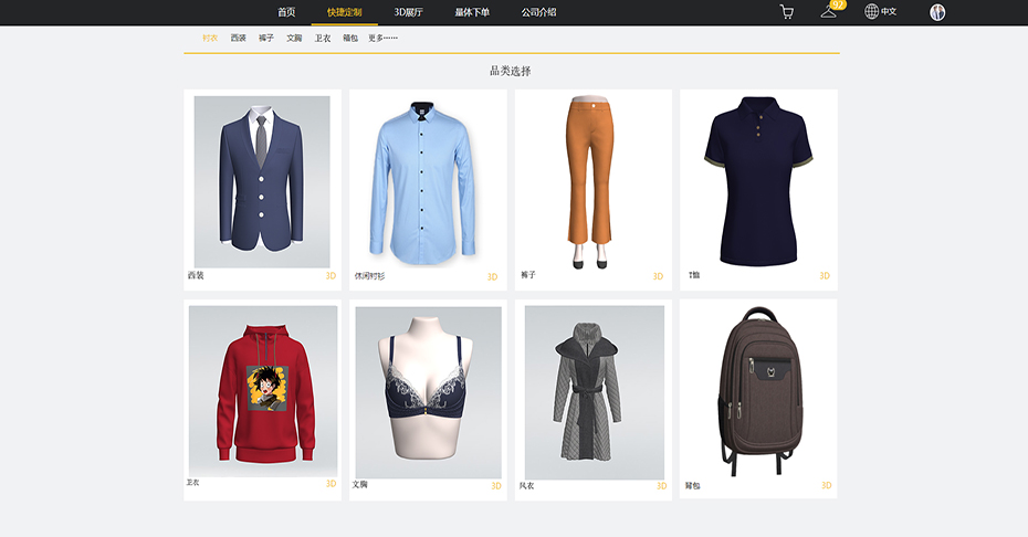 用戶可以選擇不同服裝類別、不同款式和部件,
